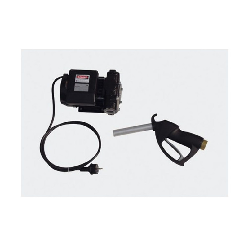 Electro bomba para gasoil. Juego completo, aprox. 56 l/min (autocebante) con válvula de toma, 4 m manguera de carga, 1,6 m manguera de aspiración con válvula de pié y rácor de bidón de 2". Fácil manejo por su peso reducido .Con protección integrada de elevador, cable de conexión de 4m en bombas de corriente 230V contínua con fusible