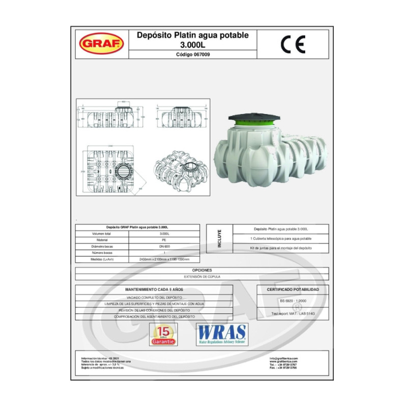 Depósito enterrado agua potable 3000 litros Platin GRAF