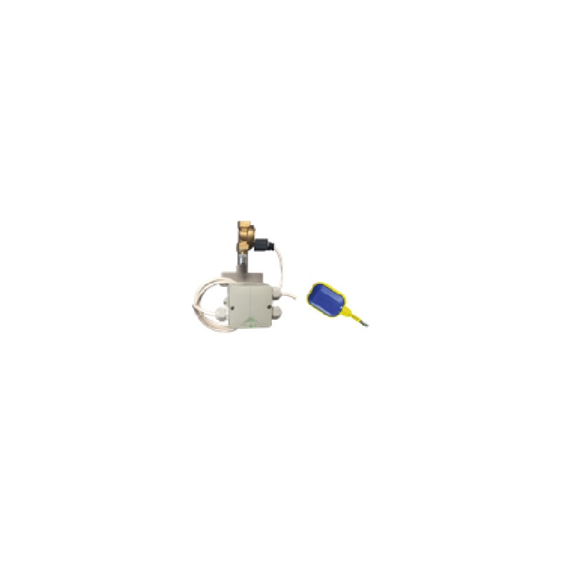Sistema automático de entrada de agua de red al depósito de aguas pluviales o grises regeneradas para evitar su vaciado total y evitar sacrificar la instalación. Consta de una boya de nivel con 3 m de cable, caja de conexiones y electroválvula (posibilidad de ½” y 1”).