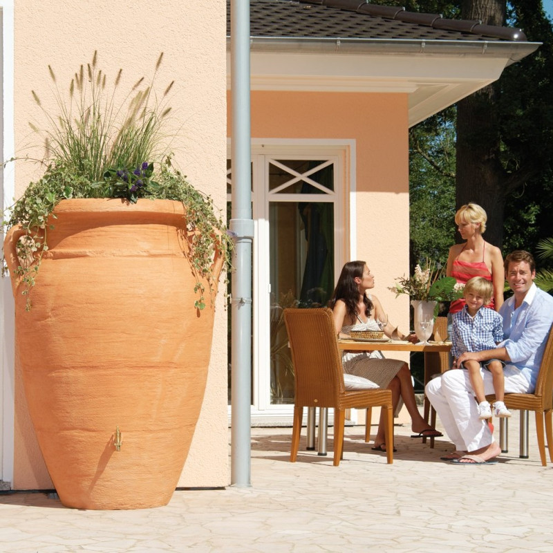 Depósito agua de lluvia decorativo 600 litros Ánfora Antique Terracota con grifo y filtro rectangular