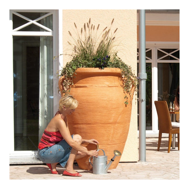 Depósito agua de lluvia decorativo 600 litros Ánfora Antique Terracota con grifo y filtro bajante rectangular