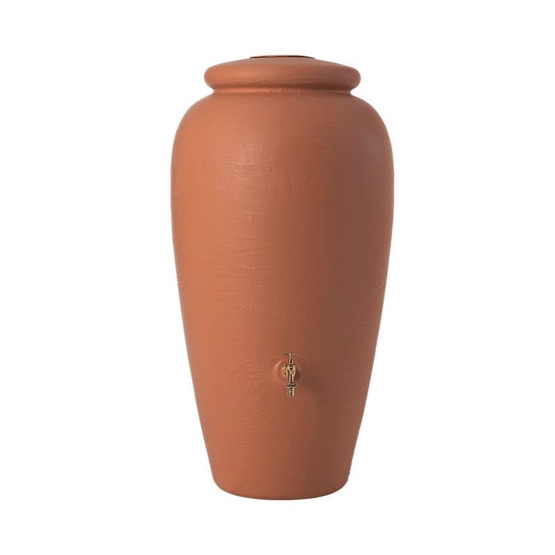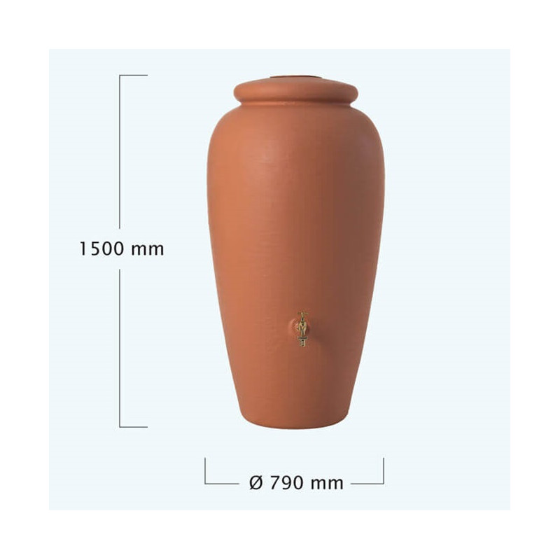 Depósito agua de lluvia decorativo 500 litros Ánfora Terracota con grifo y filtro rectangular