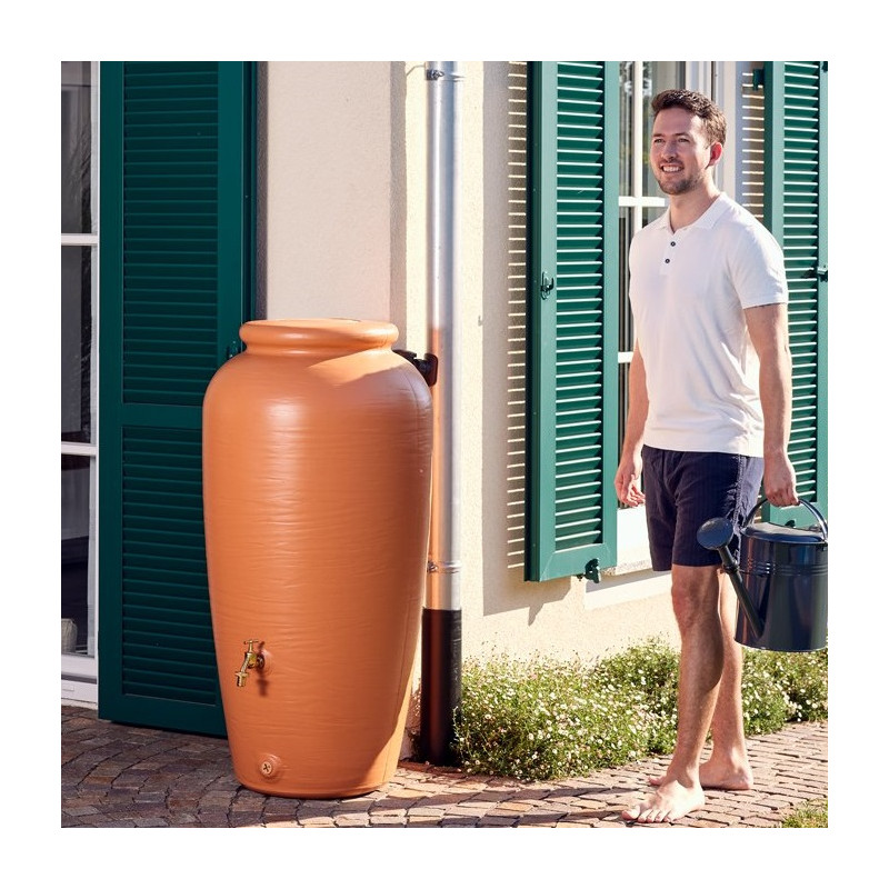 Depósito agua de lluvia decorativo 500 litros Ánfora Terracota con grifo y filtro bajante rectangular