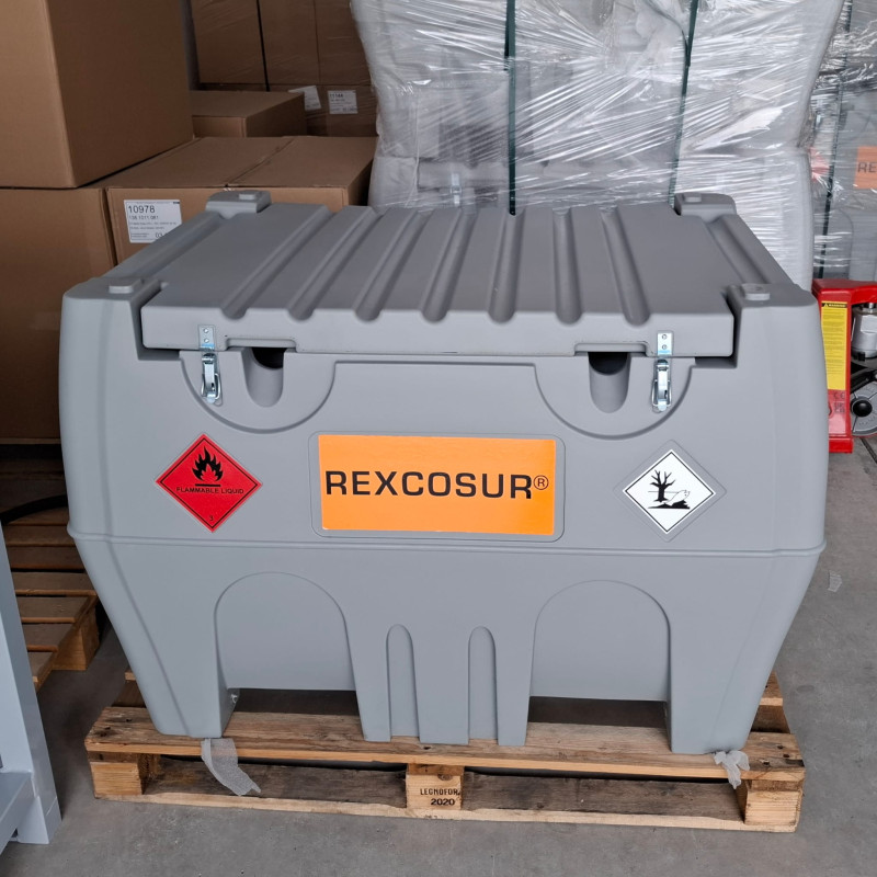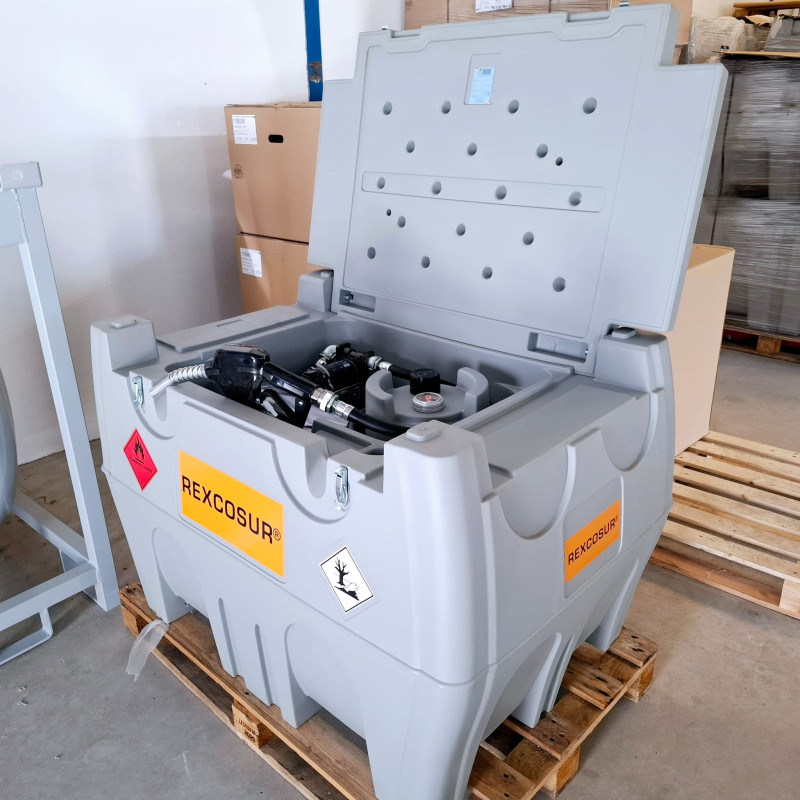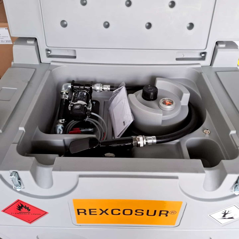 Alquiler depósito de gasoil 430 litros con bomba eléctrica 12 V 40L/min y tapa REXCOSUR