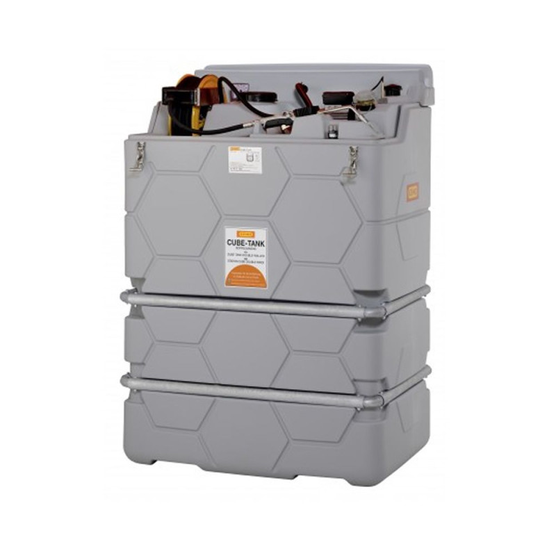 Depósito doble pared PE CUBE-Tank 1500 l para lubricación, bomba eléctrica 230 V, carrete con manguera de 15m y pistola de llenado con contador digital. Sistema de lubricación compacto, inspección de fabricación, Z- 40.21-510 aprobada