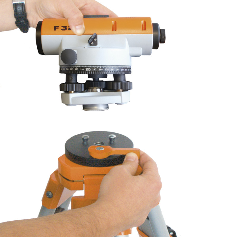 Volcando la palanca de sujeción se fija el instrumento sobre el trípode, de forma segura rápida y sencilla.