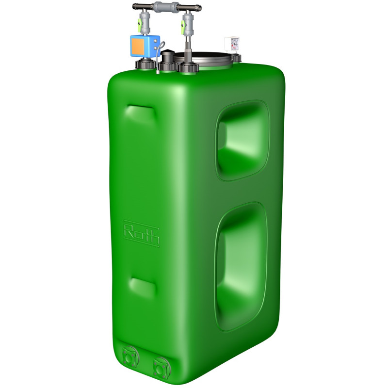 El conjunto Rothidraúlico es una solución completa para el almacenamiento y bombeo de aguas. Este conjunto incluye un depósito Rothagua cerrado de 500, 700, 1.100 ó 2.000 litros, junto con todos los accesorios necesarios para el óptimo almacenamiento de agua potable así como para su utilización posterior de forma cómoda y sencilla.