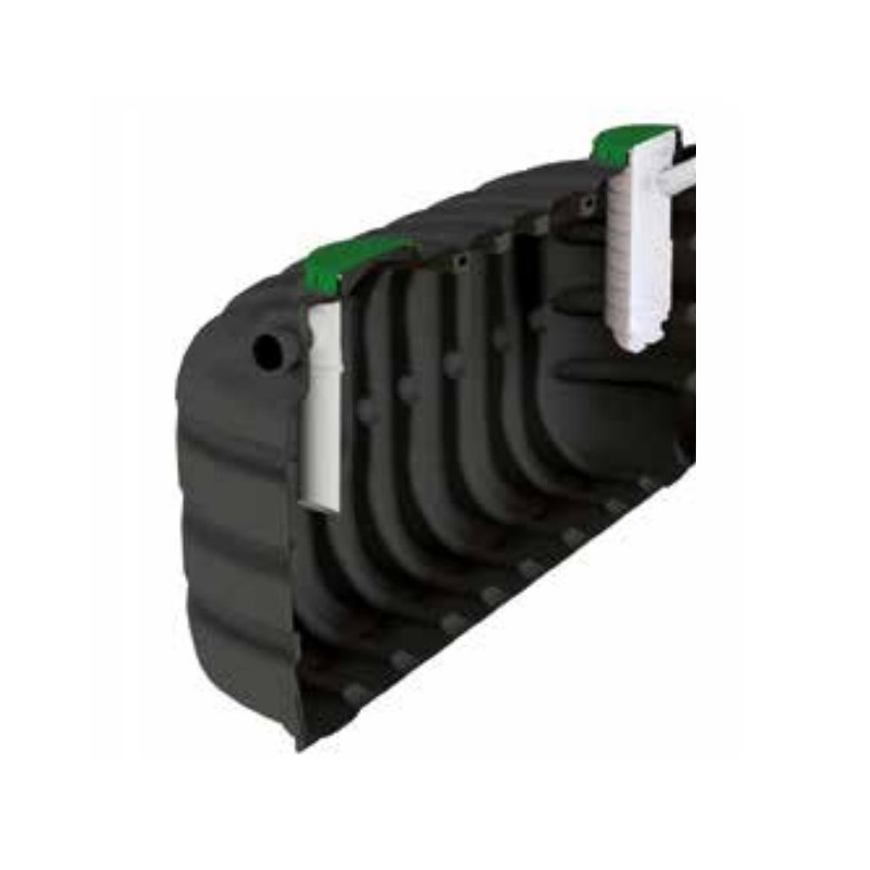 Los Epurbloc incorporan en el dispositivo de salida un prefiltro integrado relleno de material filtrante plástico de alto rendimiento que reduce el los sólidos en suspensión en la salida del efluente al tiempo que funciona como indicador de colmataje.